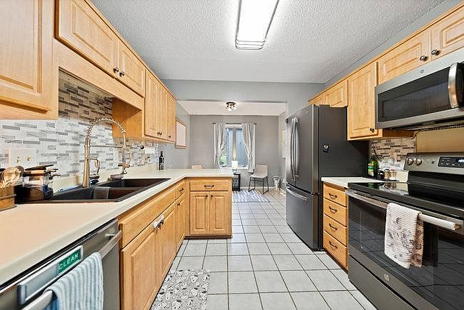 Unique home with 4 bath, 3 bedroom. Newly finished laundry in lower, new paint throughout, professionally cleaned, New roof. Siding being replaced in June '22. Patio entrance. Brand new appliances, lighting, faucets and toilets throughout, new thermostat, front door, garage door and opener, new dryer, carpet in lower and upper, new fan in master, HVAC 2017, water heater, 2019 and all outlets. This is a move in and enjoy home. Many updates and perks and location make for a perfect home. Bush Lake Ski jump walking distance, parks, marked paths surround. This is a perfect location to hop onto the freeway and enjoy entertainment, dining and shopping within minutes. Home has been recently updated throughout. Just move in and enjoy.