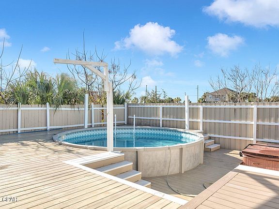 *****SELLERS ARE MOTIVATED ***** Embrace the coastal lifestyle with this 2-bed, 2-bath haven just a block from Port St. Joe's beaches. Whether for rental income or personal retreat, this property offers an above-ground pool and hot tub for ultimate relaxation. Take in Gulf views from the deck as you unwind. The master bedroom features French doors leading to a full bathroom, while the second bedroom boasts its own en-suite. There is Acasia bamboo flooring throughout the home! The kitchen boasts stainless steel appliances, including a garbage disposal in the sink and an ice maker/water dispenser in the side-by-side refrigerator. The garage, needing some TLC, presents an opportunity for conversion into an apartment, adding significant value and space. Don't let this opportunity slip away - call now to make it yours!