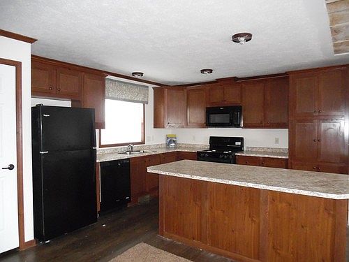 This home is a 2016 home. It offers a storage shed outside and 3 private off street parking. As you walk up to this home you will notice the large deck with plenty of space to set outside and enjoy the weather. Inside the home you will notice the large kitchen that opens up into the gourmet kitchen that offers an island with pull out drawers for easy access. The master bedroom is seperate from bedrooms 2 and 3 and offers a walk-in closet and a private master bathroom that has a double stand up shower and a garden tub. This home will not last long. Give Sun Homes at Carringotn Pointe a call today at 888-414-8384