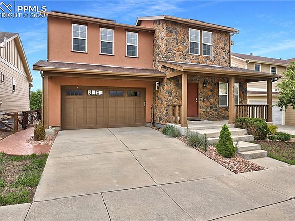 Welcome to an extraordinary opportunity! This exceptional residence emanates a cozy and inviting ambiance that is bound to make a lasting impact. The charming home boasts a stucco exterior and an expansive property that allows ample room for you to infuse your personal style. The well-appointed kitchen with an adjacent dining area and a delightful backyard presents a haven for culinary enthusiasts and seamless entertainment. The interior of the house offers generous storage space, ensuring that you will never be short on room for your possessions. The well-lit basement extends the living area, providing abundant space to create a second living room, a retreat for relaxation, or a productive home office. With over 2200 sq. ft. of airy living space, this low-maintenance home comprises 3 bedrooms and 3.5 bathrooms. Its architectural finesse adds a distinct charm that is certain to impress. The master bedroom includes a spacious shower, a double vanity, and a walk-in closet, complemented by the convenience of an upstairs laundry room. The property also boasts the advantage of paid off solar panels installed in 2021, contributing to reduced utility costs. Let's not overlook the highly coveted and award-winning schools situated within the Banning Lewis Ranch community, offering tuition-free education. With two campuses located just a mile apart, these academies seamlessly combine traditional and modern curricula, ensuring engaging learning experiences for your loved ones. Additionally, the clubhouse awaits your exploration, housing a junior Olympic pool and a splash zone that are perfect for keeping the kids cool and entertained during the sweltering summer months. The spacious patio provides an idyllic retreat in the shade, while the state-of-the-art fitness room and meeting room offer ample opportunities for staying active and socializing with neighbors. Come and witness firsthand the exceptional qualities that make this community so extraordinary and inviting!