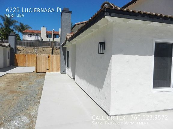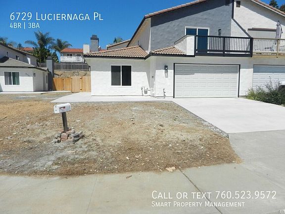 6729 Luciernaga Pl., Carlsbad, CA 92009 4 Bedroom/ 2.5 Bathroom/ 2 car attached garage/ 2200 sq ft 2 story twin home! Located on a quiet cul-de-sac street! 1 Bedroom downstairs. Decorative fire place in Living room. Central A/C! 2 Car attached Garage with opener! Beautifully remodeled Twin home in Carlsbad. Large front and back yard with low maintenance, drought-tolerant landscaping. Open concept kitchen with an island and bar seating. Quartz counter tops and newer appliances, including a newer refrigerator. Washer and dryer provided in garage! Large driveway leads to a two-car attached garage. Upgraded bathrooms with tile shower and bathtub. Luxury vinyl flooring through out. View balconies in front and back are accessible from each bedroom. Available now! Pets OK with owner and home owner's insurance approval and additional deposit/rent. Thanks for your interest! This Property Proudly Managed By Smart Property Management
