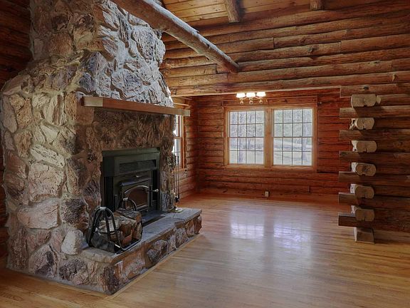 Beautiful log home nestled in a wooded area with a large yard and 3 total acres. One and a half stories with a walk out basement. Loft area overlooks the hearth room and contains a safe which is bolted to the floor and will be left for the new owners. The loft area was used as a bedroom by the previous owner leaving possible options open. There is one bedroom located on the main floor with the possibility of converting the family room into one also if you want to use the hearth room as your main living room.