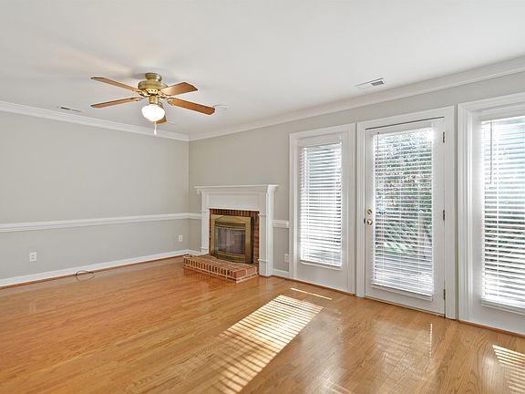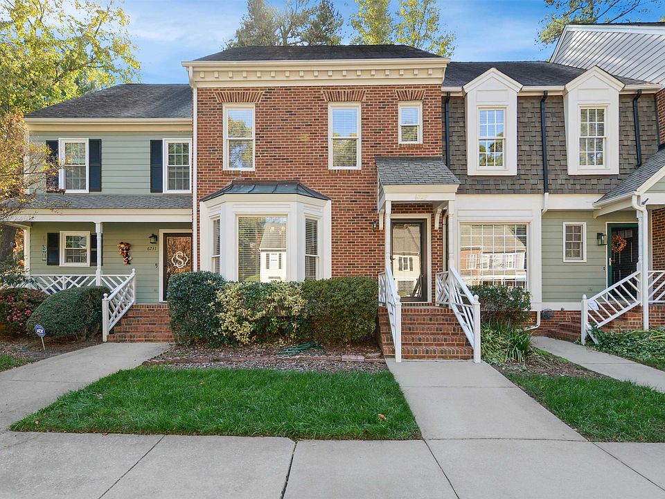 Move in ready brick front townhome in prime North Raleigh location. Hardwood floors throughout most of home. Fresh interior paint. Smooth ceilings. Spacious family room features masonry fireplace, crown molding & chair railing. Formal dining room includes bay window. Kitchen offers tiled floors & ample countertop & cabinet space. Primary suite has hardwoods, generous walk in closet & tiled bath/shower. Large secondary bedroom with ensuite bathroom. Fantastic storage space in the pull down attic with vaulted ceiling. Oversized deck with storage closet & nice wooded views. New A/C 2017. Great neighborhood in extremely convenient North Raleigh locale.
