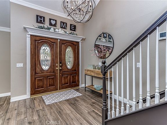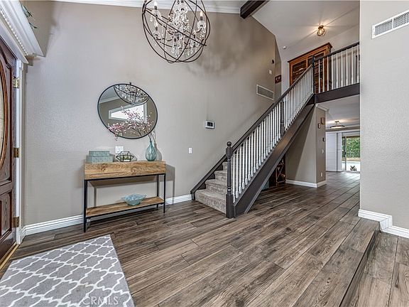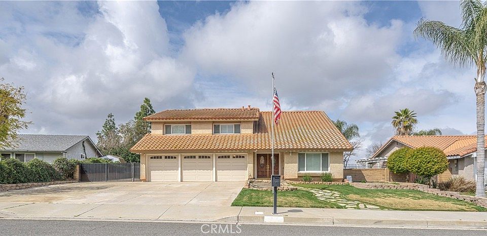 Welcome home to breathtaking, panoramic views of the rolling hills in Riverside! This single-family residence boasts a huge 10,019 sqft lot and 2,493 sqft of living space. Highlights of the home include recessed lighting, plantation shutters throughout, a large in ground pool, RV/boat parking, a fenced dog run, solar (paid off), as well as upgraded bathrooms and kitchen. As you enter you are met by the formal living room. High cathedral ceilings and windows create a naturally brightened and spacious feel throughout the home. Adjacent to it is the formal dining room showcasing a modern farmhouse light fixture. Gorgeous arabesque backsplash, quartz counters, white shaker cabinets, and a breakfast bar with designer pendant lighting are presented in the kitchen. High-end stainless-steel KitchenAid appliances include a 6-burner cooktop, double oven, dishwasher, and microwave. Adjoined, the family room creates a great entertainment space offering a fireplace, wet bar equipped with a wine fridge + built-in shelving, a half bath for guests, and patio sliding doors opening to the backyard. Nestled in the same area you will find direct access to the 3-car garage and laundry hookups within. Moving upstairs, the second level is home to the master suite, 3 standard bedrooms and the guest bathroom. The master is grand, featuring an upgraded en suite consisting of a large dual vanity, a walk-in shower with a spa bench, a walk-in closet, private fireplace, and an oversized balcony. Add patio furniture to create your own comfort space as you enjoy views of the mountains and hills. The backyard is the ultimate entertainers dream complete with an abundance of space, greenbelts, a patio cover, and a sparkling pool. Separated by a fence, the paved side of the backyard creates a safe space for a children’s play area or dog run. The opposite side has a side gate that allows RV or boat parking. Located less than 15 minutes away from UC Riverside, Costco, Home Depot, grocery stores and shopping centers.