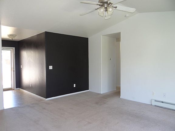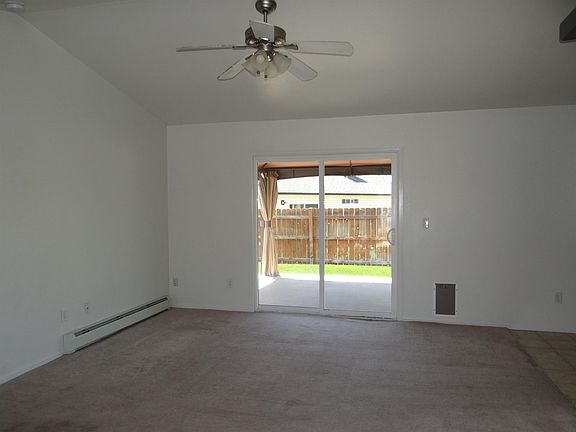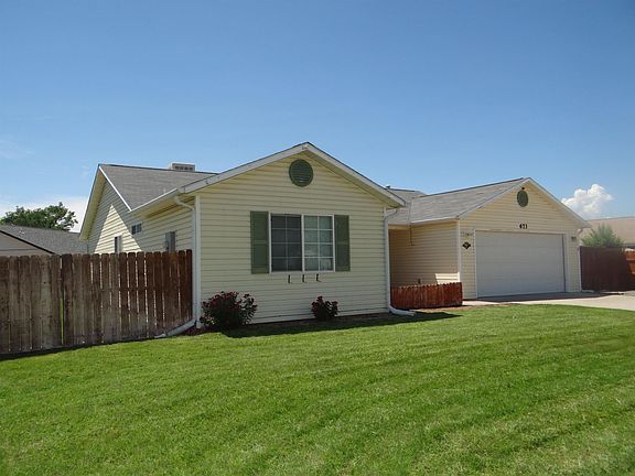 Ranch style home in Fruita features 4 bedrooms, 2 baths, and 2 car garage. Living area opens to covered patio. Primary bedroom features double closets and double sinks. Big fenced in yard, storage shed, and RV parking.