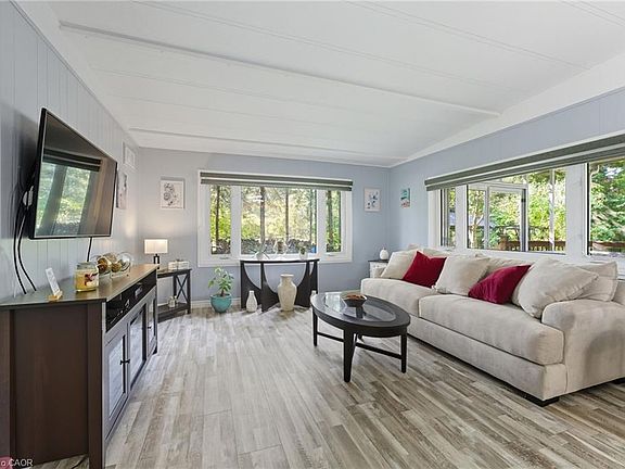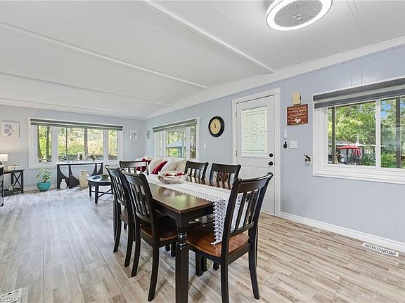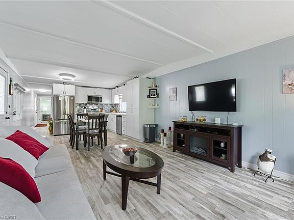 Welcome to Unit #518, a beautifully updated Northlander model offering the rare privilege of year-round living in the family-owned and operated Hillside Lake Park. Over the past few years, this home has undergone extensive renovations and presents a fresh, move-in-ready space to call your own. Step inside to find new vinyl plank flooring, fresh paint, upgraded lighting, and custom zebra blinds throughout. The stylish eat-in kitchen features upgraded cabinetry, stainless steel appliances, and a rough-in for a dishwasher. A spacious living room with two large windows fills the home with natural light, while the primary bedroom offers comfortable proportions right beside the 4-piece bathroom with in-suite laundry. A second bedroom or flex room makes the perfect spot for an office, craft space, or guest room. Outdoors, you’ll love spending time on the massive 40' x 12' covered deck, complete with a 10' x 12' screened-in room—perfect for morning coffee or evening gatherings. The exterior of this home is surrounded by mature trees and features a fire pit, deck with gazebo, and two sheds for extra storage. Included in the sale are tons of extras such as outdoor furniture, fire table, shelving, storage boxes, firewood, and more! Very rarely do these year-round units come up for sale, especially ones with these upgrades, so DO NOT miss your chance! Book your showing today! [Monthly rent: $540.04 (additional fees apply)]