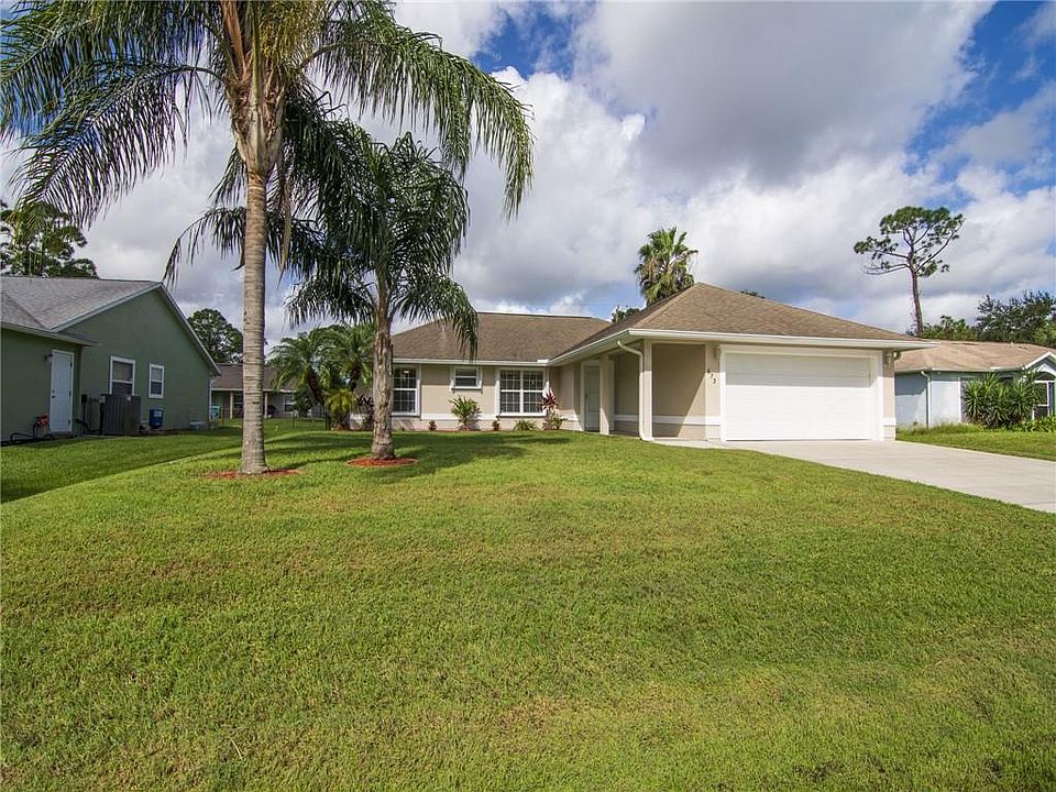 Exceptionally beautiful CBS home in no HOA Sebastian Highlands. Open floor plan, cathedral ceilings, bright updated kitchen w/quartz and subway tile, new baths, too! Six year old Trane AC still under warranty, accordion shutters, 2.5 year old water heater, recirculator for instant hot water, screened porch. Gorgeous backyard w/ room for pool. Looks and feels like a new home!