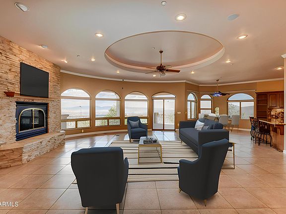 This thoughtfully custom-built home offers subtle elegance and serenity. The welcoming main level boasts 2937 sq ft opening to forever views including the SF Peaks and open floor plan living area w/gas fireplace, gourmet kitchen, breakfast bar & nook. Formal dining, master suite, w/split floor plan to office, 1bdrm, full bath, large laundry rm & access to an oversized 3 car garage with built in storage & workbench. Perfect for all your toys! Inviting lower level walk out is 2199 sq ft, w/family rm, pool table, gas fireplace, kitchenette, 1/2 bath, workout/hobby rm, 2 large bdrms, full bath, storage rm. Abundant storage throughout the home. The covered upper deck & lower patio provide endless opportunities to savor breathtaking views. Professionally-maintained property.