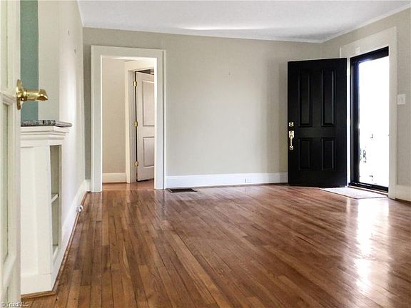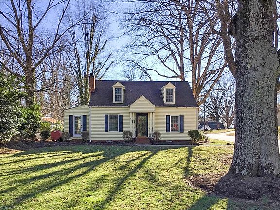 Laced with traditional charm, this in-town cottage has been well-maintained over the years -- arched doorways, beautiful hardwood floors, completely updated kitchen (2019) with custom cabinets, stainless steel appliances, granite counter tops and fixtures, main level laundry, office space, fireplace with gas logs, 1 1/2 baths completely updated, and tons of sunlight streaming through the many replacement windows. All this and more located within walking distance of downtown Elkin, Elkin City Schools and easy access to Yadkin Valley wineries, area trail systems and many more amenities. Four possible bedrooms (2 upper bedrooms do not meet 7' ceiling height requirement ) with closets in all bedrooms. Extra lot adds space to the fenced in back yard. Cute storage building with matching vinyl siding.