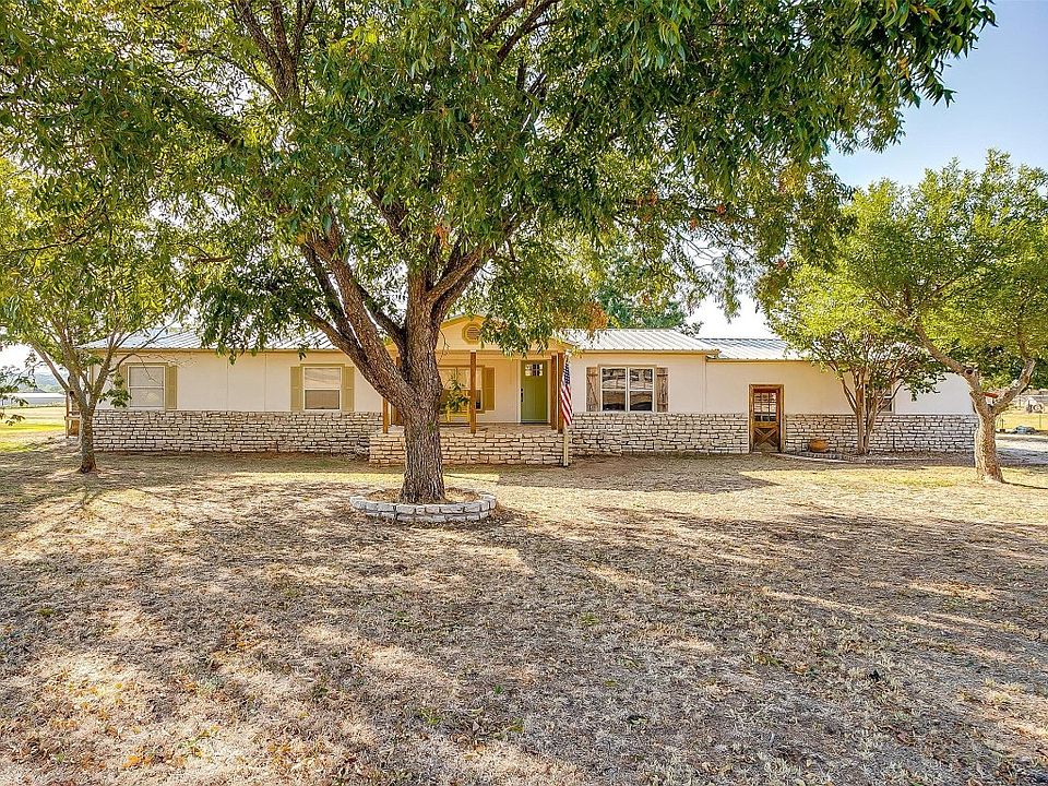 Beautiful two acre lot with a spacious 3 bedroom 2 bath home. Open dining area and large kitchen island, open concept living area, newly remodeled primary bath with walk in shower and dual sinks. Separate utility room with outside access. Two car garage, large work shop with extra storage, additional building currently used for storage and chicken coop. Plenty of extra parking.