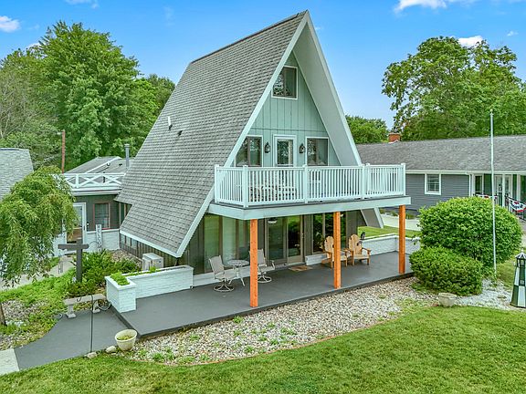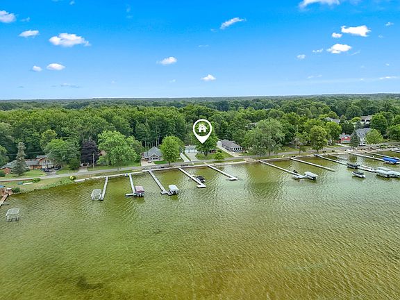 COLDWATER LAKE: Experience luxurious lake living with this beautifully remodeled home situated on 100 feet of pristine lake frontage, perfect for breathtaking sunrises and endless water activities. This 3-bedroom, 2.5 bath property offers over 2,400 square feet of airy, elegant living space designed for relaxation and enjoyment. The main floor features a spacious primary suite complete with a walk-in closet and full bath, ensuring a private retreat. The stunning kitchen boasts ample cupboards, stainless steel appliances, and flows seamlessly into the formal dining and living rooms both offering stunning lake views. Upstairs, two additional bedrooms and a full bath provide plenty of room for family and guests, with a balcony that overlooks the lake. Outdoor living is equally impressive with a fully landscaped yard, in-ground sprinkler system, and a fenced backyard that adjoins the beautiful 18-hole Bella Vista Golf Course. Entertain friends and family on the patio area, enjoy evenings by the fire pit, or fire up the grill for a lakeside BBQ. For your convenience, there's a private launch for your boat or jet ski, ensuring easy access to Coldwater Lake, the largest lake in the 17-mile chain of lakes. The property also includes a large pole barn that's fully insulated with electricity for all your lake toys, and a portion of the garage has been remodeled with a gas stove/heater and screened garage doors. There's ample storage throughout, ensuring all your needs are met. Come, relax, and make unforgettable memories. This home is currently utilized as a very active Airb&b that could easily be transferred to new owner as well. Call today for a personal showing on this beautiful home!