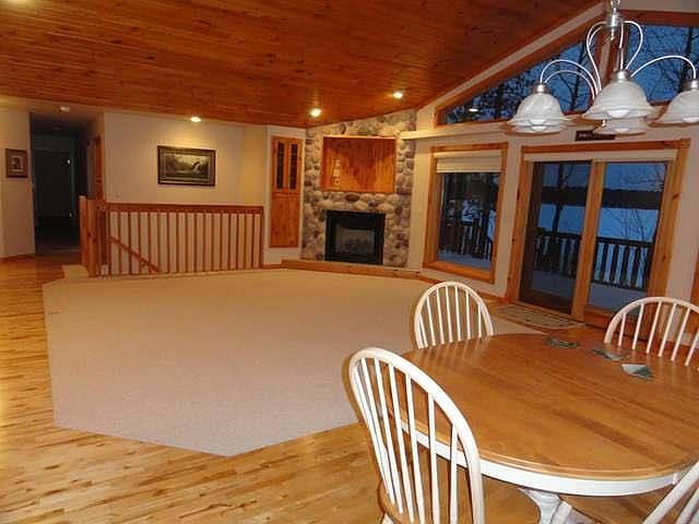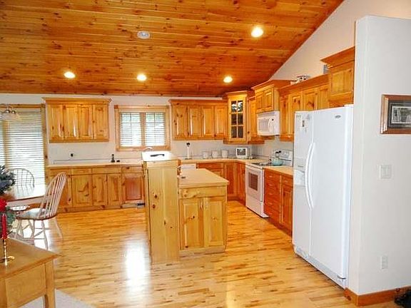 A Million Dollar View!! This Beautiful custom built log-sided home has a full view of the lake and offers bright open living space along with 3 bedrooms, 2 full bath, a main floor laundry and attached garage. Enjoy the spectacular view through the large windows and all glass doors or from the lake side deck. The home has wood floors, pine panel doors and cabinets with creative carvings of fish and pine cones. The dining area offers a corner bar area for entertaining and the kitchen also has a ce