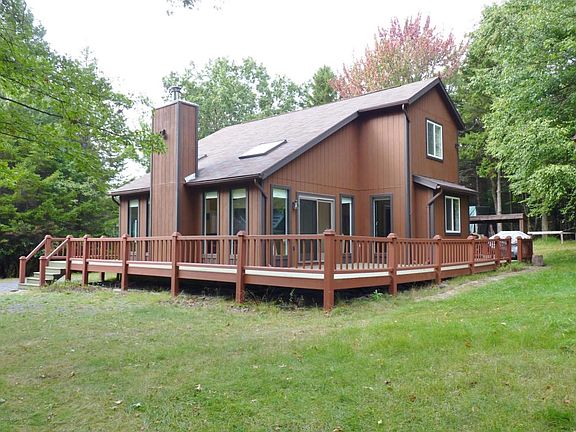 You will Fall In Love with this beautiful park like setting,nestled among the rhododendrums. Well cared for & maintained this gem of a home is perfect for your vacation retreat or primary residence. Home features a large living room with lots of windows,light and bright,wood burning fireplace. Large country kitchen ,mud room and laundry area all on 1st floor. In addition there is a large master bedroom with a bonus room ,which make a perfect sitting room to watch nature . 2nd floor has 2 more large bedrooms and full bath.Wrap around deck to enjoy the summer days & nights. Large shed too. Close to All Pocono Attractions ,shopping and major roadways. Schedule your appointment today.