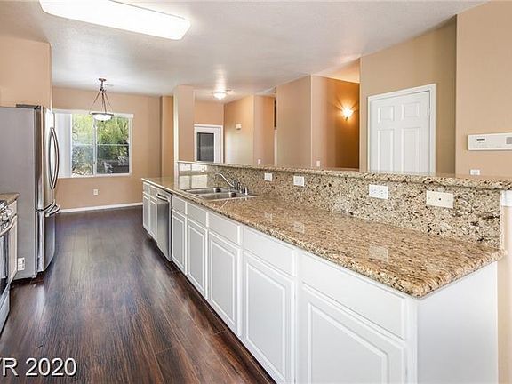 Gated beautiful 2nd story condo located in Summerlin area near Summerlin Pkwy & Summerlin Hospital. This condo is overlooking the community pool. This condo has many upgrades including a huge granite breakfast bar, stainless steel sink, white cabinets, laminate floor throughout the property. One car garage is attached to access the condo