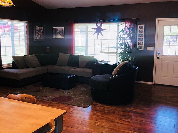 Juniper Crest home has a great floor plan, large light and airy great room with dining, large kitchen with lots of cabinets/cupboard space and bar area. 3 bed, 2 full bath, 1384 sq feet has been updated with laminate wood flooring. Large master and master suite, laundry w/utility and double car attached garage. Forced air, central A/C, fully fenced & landscaped yard w/ garden area, sitting on a generous cul-de-sac lot with city views. Close to town & community fishing pond. Look today before it's gone!