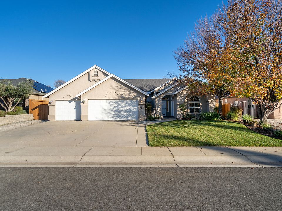 Come check out this light and bright 3 bedroom + office / 2 bathroom home in the Alder Creek Subdivision in Northeast Redding. This house is conveniently located close to schools, walking trails, churches, and shopping, yet feels like country living with green space views from the backyard. Enjoy the comfortable floorplan featuring a large kitchen with island, two living and dining spaces for entertaining, built in tub and walk-in closet in master suite, and spacious, vaulted ceilings throughout. New roof in 2020.