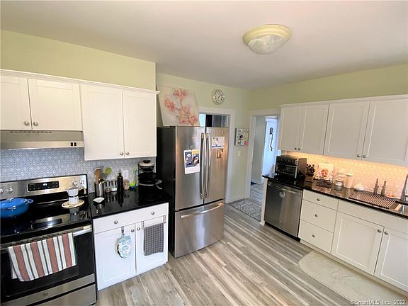 This charming home in Groton was renovated in 2019 but still retains the original 1898 charm and architectural details that are not found in new homes- built-ins, bow windows, columns, beautiful staircase- a great vibe 3 bedrooms, 1-1/2 baths, wide wrap around porch. Recent upgrades include quartz kitchen countertop, porcelain tile backsplash, extra big/deep/wide Blanco dual kitchen sink and "touch 20" kitchen faucet, new boiler in 2019, 50 year architectural roof shingles. The 3 spacious bedrooms each have hardwood floors, built-in shelving, window seats and plenty of natural light. 1.9 miles to Electric Boat 1.5 miles to the Pfizer Groton main entrance 1.2 miles to the Groton-New London Airport - 0.8 miles to the Pfizer Groton visitor center 0.5 miles to the Shennecossett Golf Course 0.6 miles to the Par Four restaurant ~~Home being sold AS-IS, any inspections, if done, will be for buyer's information only~~