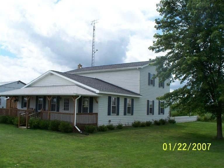 Newer country home features a beautiful kitchen,Hardwood floors,6 Bedrooms, 2 1/2 Baths, all appliances, Central air, Newer roof & furnace with wood burning add on. 40x80 pole barn with 4 horse stalls all sitting on 5 acres.