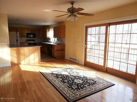 THIS 4 BEDROOM WELL MAINTAINED HOME BOAST GENEROUS SIZED ROOMS AND AN OPEN FLOOR PLAN. LOCATED ON A CUL DE SAC IN A TRUE WOODED COMMUNITY OF POCONO RANCHLANDS. IDEAL PRIMARY HOME OR SECONDARY HOME. BEAUTIFUL HARDWOOD FLOORS IN DINING ROOM. TONGUE AND GROVE CEILINGS, EXPOSED WOOD BEAMS. WELL CONSTRUCTED AND LOVINGLY MAINTAINED