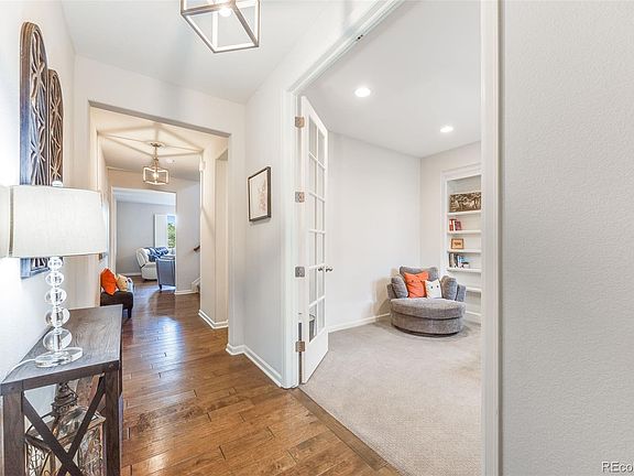 Discover resort-style living in the exclusive gated community of Backcountry, where this beautifully maintained 5-bed, 4-bath home offers an exceptional blend of space and sophistication. Inside, you’ll find 9-foot ceilings, plantation shutters, a main-floor office with custom built-in shelving, a spacious second-floor loft, and a finished basement. The first floor boasts rich walnut-stained hardwoods and a cozy family room with a gas fireplace framed in stone. The gourmet kitchen, seamlessly connected to the family room, is equipped with updated stainless-steel appliances, including a new Bosch refrigerator and a GE Café induction cooktop, mocha-stained 42" cabinets, a stylish subway tile backsplash, and a center island. A walk-in pantry and Quartz countertops complete the space. Outside, the two-tiered patio overlooks a large professionally landscaped backyard with a covered area, perfect for enjoying Colorado’s nights. Upstairs, a large loft area is accompanied by three secondary bedrooms and a full bath featuring dual vanities.The primary suite is accessed through double doors and includes a luxurious ensuite with a soaking tub, dual vanities, and a walk-in closet with custom Elfa shelving. The finished basement offers a second family room/game room, an additional bedroom with a walk-in closet, a ¾ bath, and a large storage room. New: exterior paint, whole house fan, epoxy floors and storage shelves in garage, and additional landscaping. Residents enjoy access to all four Highlands Ranch recreation centers, as well as the private Sundial Backcountry clubhouse, which includes a resort style pool, a modern fitness center, a viewing lounge, and an event space. With scenic Backcountry trails and community parks nearby, outdoor activities are just steps away! Don’t forget to visit the new coffee shop located right at the entrance. This property qualifies for a 1% interest rate reduction for the 1st year paid for by preferred lender.
