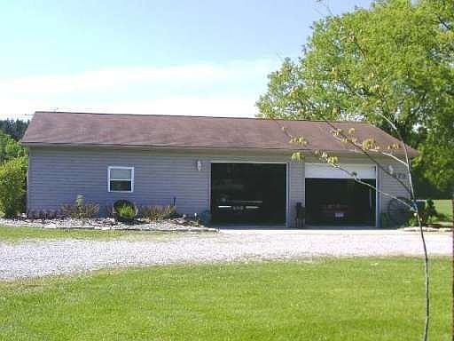 Updated 1580 Sq Ft 3 bedroom farm house on 20 acres with 4 car 32 x 48 garage and 48 x 64 pole barn. Gas log fireplace in living room. Large master bath w twin tubs. Roof and furnace new in 2005.