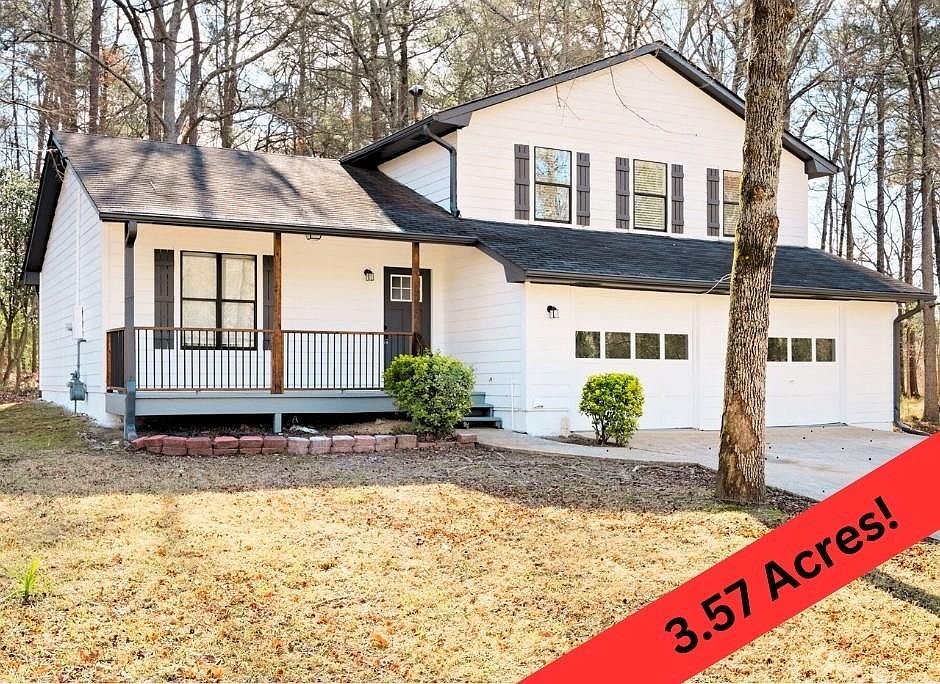 Beautifully RENOVATED HOME on a HUGE 3.57 ACRE FLAT LOT in the quaint, non-HOA neighborhood of Ashland Estates. NEW air conditioning, NEW exterior & interior paint, NEW flooring throughout, NEW quartz countertops & cabinets, NEW vanities in all bathrooms, NEW light fixtures, NEW garage door openers, NEW blinds - the list goes on. This house has been meticulously renovated to be your perfect home just outside of Atlanta. This Riverdale gem boasts 3 large bedrooms, 2 full bathrooms, 2 large living spaces, & a 2-car garage. You’ll fall in love as soon as you walk through the rocking chair front porch and into the stunning living room with huge cathedral ceilings and tons of natural light. The living room is completely open-concept to the freshly renovated kitchen with new custom cabinets, white quartz countertops, and stainless steel appliances. The kitchen flows into the dining area overlooking the large den where the family can cozy up by the floor-to-ceiling fireplace. The den also includes a french door out to the backyard patio and access to the garage. Upstairs you will find your spacious master suite including an en-suite bathroom with new vanity and quartz countertop, 2 generously sized additional bedrooms, and a large renovated hall bathroom featuring a new vanity with a quartz countertop. The home is situated on a MASSIVE 3.57 acre flat wooded lot AND is the ONLY house in the whole cul-de-sac. Escape from the hustle of the city with your own private retreat only 15 minutes to the airport and less than 30 minutes to downtown Atlanta.