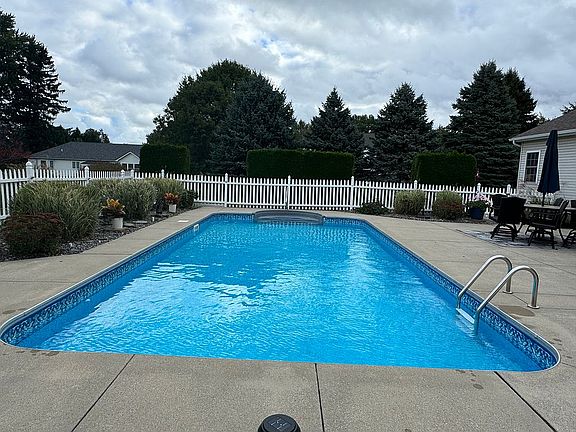 Beautiful, quiet neighborhood. Beautiful landscaping around entire home with Gorgeous inground swimming pool. Pool has new vinyl liner, with vanquish system, gas heater and new pump. Home interior professionally painted with neutral gray color. New granite countertops through out with ceramic back-splash in kitchen. First floor master bedroom has vaulted ceiling with master bath remodeled in 2020 . Livingroom has cathedral ceiling with round top large front window. The 2 story foyer is quite welcoming. Perfect move in condition- new appliances, central air, furnace, hot water tank, and water softener. French doors to office space. New carpeting in office, living-room, up the stairs and including the 3 bedrooms on second floor. This home also has 2 fireplaces, one in the family room, the other in the finished basement, including custom oak wet bar and wired for surround sound theatre. Family room has solid oak floors. Sliding glass doors off kitchen dining area to covered patio, with side awning. This is a delightful space for enjoying the peaceful outdoors. Natural gas line on back patio for grill. Wiring in ground for invisible fencing. Attached 2 car garage with extra storage space and utility sink w/ hot and cold water. Garage has insulated ceiling and walls with a gas heater as well.