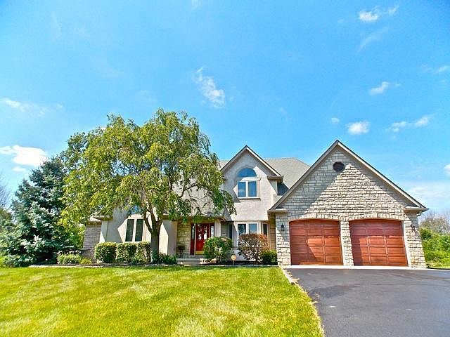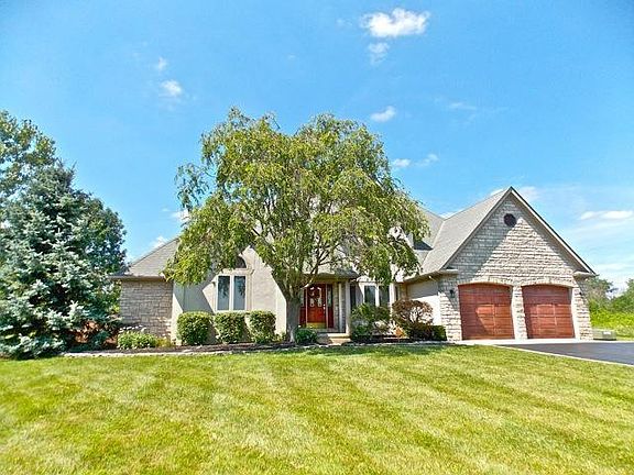 Fantastic stone and stucco home, sits back off the road and is situated on just over 7 acres offering lots of privacy. Kitchen has granite counter tops & sliding glass door that opens to large deck. Vaulted great room off of kitchen. First floor master suite has dual sinks, whirlpool tub, newly installed tile shower and tile floors, walk in closet. Another deck off the master leads to hot tub. First floor offers a den/office off the foyer and additional dining room. Walkout basement had additional 1600 sq feet and offers theatre and entertainment areas. Newly installed hardwood floors. 2nd floor has 2 large bedrooms and Attic roughed in for bed/bath. New paint throughout inside and outside of house. First floor & basement have new carpet. New A/C 2014, New furnace 2015 H20 & Natural Gas.