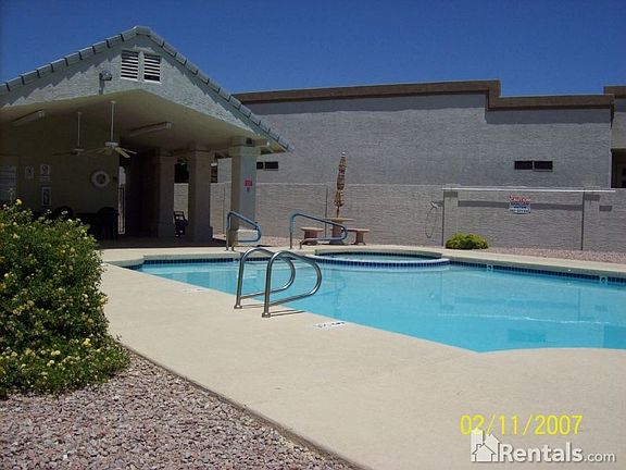 Gated community near Power/Brown, community POOL, custom decorator paint throughout, single level split floorplan, raised ceilings, skylights, ceiling fans, wood floors in 2 bedrooms, covered patio with small yard, 2 car garage w/opener, washer, dryer and refrigerator. HOA takes care of the front yard. No smoking inside. Pet considered.