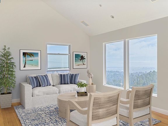 Get ready to be awestruck by this stunning 4-bed, 3-bath residence, built in 2000 with a 3-car garage and breathtaking views. Located in the Forestland Neighborhood, it offers unmatched bay, bridge, and city skyline vistas. Inside, you'll find soaring ceilings, abundant natural light, and oak hardwood floors. The gourmet kitchen features Wolf and Bosch appliances, granite countertops, and a central island. Every room offers captivating views, providing serenity and lush surroundings. A grand staircase leads to the primary bedroom with a spacious walk-in closet and an opulent en-suite bathroom. The outdoor space boasts drought-resistant flora and panoramic vistas. Situated on a private road, it's just a 7-minute drive to Highway 13 in Montclair or Highway 24 in Orinda. Enjoy nearby scenic trails, cultural experiences, local dining, and the best of the East Bay. This property sets the gold standard for luxury living—seize the chance to make it your own and live the dream!
