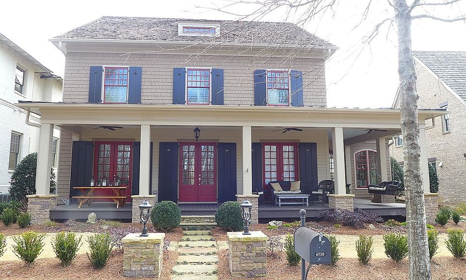 A true Vickery original with the quintessential Southern Front Porch! This fully furnished 5 Bedroom, 5 Full Bathroom home sits on a premium lot overlooking Bucks Park. Featuring 5 sets of French doors that flow beautifully between indoor and outdoor living - this is what living in Vickery is all about. Enjoy the convenience of a 3-car Garage with additional 4th parking place and over 4000 Square feet of living space together with over 400 square feet of covered front porch! The gourmet kitchen features an 8-burner range and double oven, farm sink, and a full butler pantry with wet bar. Plank ceilings, 8 foot doorways, and hardwood floors throughout. One of the most special features of the home is a painted brick sunroom surrounded by windows and French doors that flow from the wrap-around front porch to the rear courtyard. Open to leasing from 3-12 months. Shorter lease terms considered. Small pets allowed for an additional $500/month. No smoking.