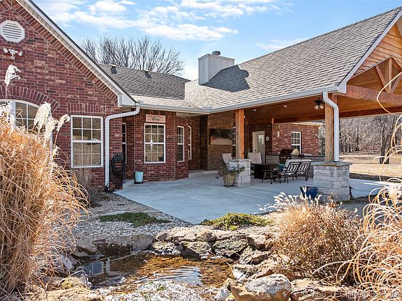 This 73.5 acre Northeast Oklahoma horse farm has everything you have been looking fort located in Adair, OK and Adair School District. The home is nestled In a beautiful wooded setting on the side of a hill and has three bedrooms, two bathrooms, a home office that could be a fourth bedroom, open vaulted living area, formal dining room, beautiful kitchen with hickory cabinets, granite countertops with breakfast nook, nice sized pantry, laundry room and expanded two car garage. The master suite has an adjoining master bath that has granite countertops, spa tub and walk in shower. The outdoor entertaining area is a dream with vaulted patio cover, amazing woodwork on the ceiling, ceiling fans, outdoor TV, and kitchen for lots of entertaining throughout the year. The 40X60 fully concrete horse barn has a portico for parking trucks and trailers, a heated and cooled tack room with half bath, hot water tank and Its own septic system. The inside of the barn has four horse stalls with fans, with additional space for another horse stall. There is also a horse wash bay with horse ties, water drain and hot and cold water to be able to groom and care for your horses and farm animals year round. The land is gently rolling, cross fenced with two ponds, an abundance of wildlife and could easily run 20 to 25 cow calf pairs.