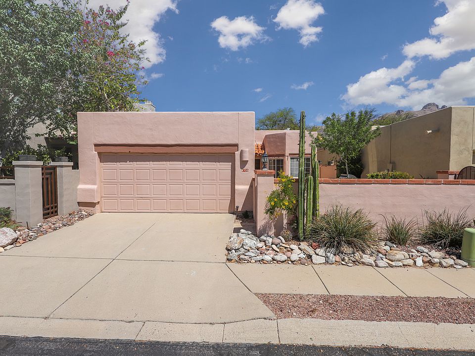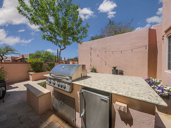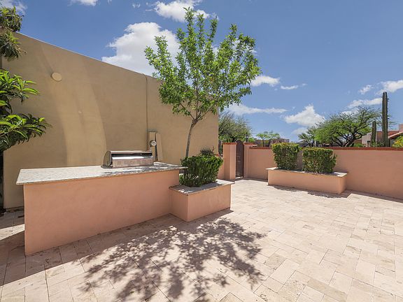 Discover luxury living in this beautifully upgraded 3 BR, 2 BA home located in a gated community offering a community pool & spa in the heart of the Catalina Foothills. Designed for both comfort and style, this home features diagonal tile flooring throughout, creating a sophisticated look. The spacious living area is enhanced by high ceilings and a cozy gas fireplace, The chef's kitchen is a standout, offering custom cabinetry, a gas range, and a stunning custom tile backsplash, providing both functionality and elegance. Bathrooms feature custom tile bath surrounds and vanities, adding a touch of luxury to your daily routine. Step outside to your private yard, complete with planters & covered patio. Enjoy the private front courtyard with built in grill. Discover luxury living in this beautifully upgraded 3 BR, 2 BA home located in a prestigious gated community offering a community pool & spa in the heart of the Catalina Foothills. Designed for both comfort and style, this home features diagonal tile flooring throughout, creating a seamless and sophisticated look. The spacious living area is enhanced by high ceilings and a cozy gas fireplace, perfect for relaxing evenings. The chef's kitchen is a standout, offering custom cabinetry, a gas range, and a stunning custom tile backsplash, providing both functionality and elegance. Bathrooms, feature custom tile bath surrounds and vanities, adding a touch of luxury to your daily routine. Step outside to your private yard, complete with planters & covered patio. Enjoy the private courtyard with built in grill ideal for entertaining or unwinding in the serene desert surroundings.