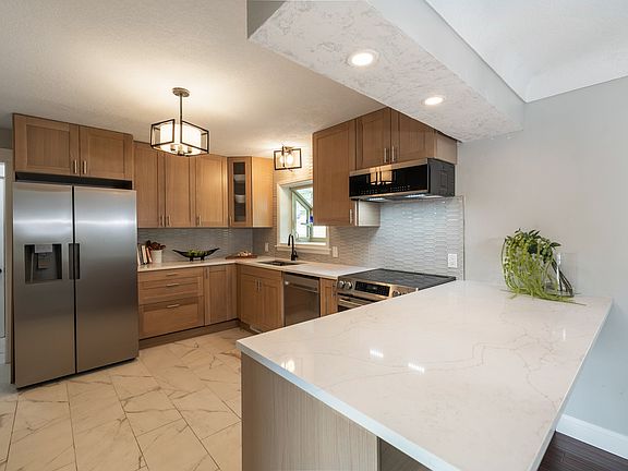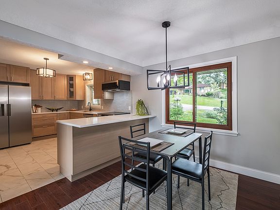 This beautiful brick walkout ranch is truly a special property. The over half-acre lot that backs up to trees provides privacy and a serene escape from the busy day-to-day; you truly feel surrounded by nature when you’re in this backyard. The main floor features 3 bedrooms, 1 full bathroom off the hallway and a half bath off the primary bedroom. The living room features a brick hearth around the fireplace and a wall of windows that look out over the expansive backyard w/ mature trees, walk out the sliding door to take it all in on the newly painted back deck. First laundry room located at the bottom of the stairs in the basement. The finished basement has a second living room w/ a fireplace, a second laundry room off the living room, a second kitchen, two bedrooms and one full bathroom. A bonus room, accessed by an exterior door, is located below the attached garage that could serve as your own private wine cellar or simply for extra storage. A new shed in the back corner of the yard is perfect for storing all of your yard and garden tools. So many updates have been made, but to highlight a few: new main floor kitchen w/ quartz counters, tile backsplash, custom cabinetry, and new appliances; new acacia wood floors on the main level w/ new carpeting in the upstairs bedrooms and the entire basement; new paint throughout; furnace and AC replaced in 2025, Septic tank replaced in 2025, roof replaced in 2022, windows replaced within the last 10 yrs.