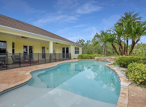 BUYERS FINANCING FELL THROUGH!!! OWNERS SAY GET IT SOLD NOW!!! Bring all offers!!! Welcome to this beautiful Florida oasis on 5 acres of land with a long, winding 800 ft paved driveway leading to this 3632 sq ft home. Home has been freshly painted inside and out. Property has approximately a half acre pond which was stocked with fish. This secluded piece of paradise is private and fenced and has an amazing custom, 25,000 gallon POOL and SPA with waterfall, and foliage for an island experience. Spacious 4 bedroom plus den (can be used as a fifth bedroom) /3 bath home also has an office, a large bonus/gameroom, greatroom/family room, and formal area if you choose to use them as such. Home has 3/4" Hickory wood plank flooring throughout and soaring 14 ft ceilings. Kitchen is very large and has a center island, real wood cabinets and stainless appliances. Master bedroom is HUGE! Master bath has been completely remodeled with jetted tub & all baths have large tiled showers. Home has two A/C units, a five car garage, fenced pasture and goat pen. What more could you ask for? This home comes with a 1 year home warranty!