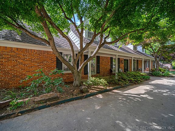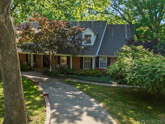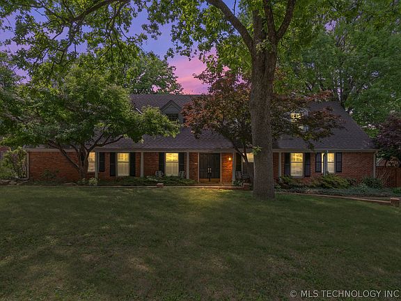Beautiful, spacious home with enormous pool on half acre lot in Southern Hills Country Club area. Offers 3 full ensuites, with primary bedroom up or down, 3 living areas & formal dining, large eat in kitchen w/granite, bar for entertaining, pool, landscaped, extra parking in back, circular drive with rear garage and additional parking, quiet neighborhood, peaceful backyard with a pool. October 2023 updates include: