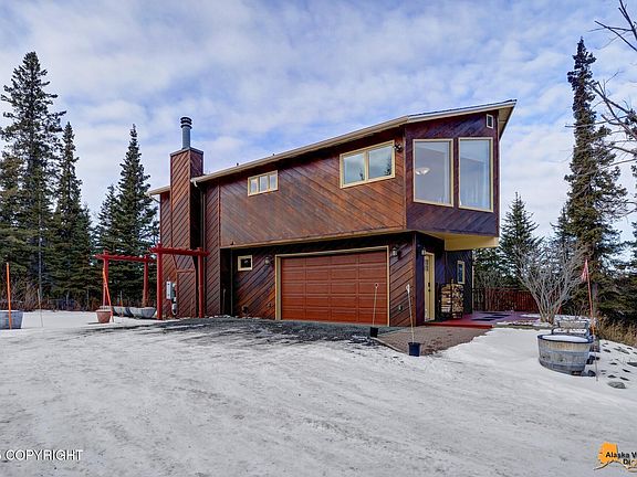 Nestled in the heart of nature, this stunning Alaskan home offers the perfect blend of privacy, comfort, and breathtaking views. Surrounded by forest, it features a thoughtful floor plan with all 3 bedrooms upstairs, a remodeled kitchen, and vaulted tongue-and-groove ceilings. Enjoy panoramic Chugach Range views, peekaboo sights of Mt. Foraker, and spectacular gardens on 2.24 serene acres.A true Alaskan retreat, where the tranquility of the forest meets modern comfort. This thoughtfully designed home features a functional floor plan with all three bedrooms conveniently located upstairs, including a spacious primary suite with a private bath, double sinks, and a separate tub and shower. The primary bedroom's wall of windows showcases stunning views of the Chugach Range, while north-facing Dining Room windows offer peekaboo views of Mt. Foraker, creating a picturesque backdrop year-round. Vaulted tongue-and-groove ceilings in the living room and primary bedroom add warmth and character, complemented by abundant natural light. The beautifully remodeled kitchen is a chef's delight, featuring custom cabinets, solid surface countertops, stainless steel appliances, and gas cooking. Adjacent, a cozy family room with a fireplace invites relaxation, perfect for chilly Alaskan evenings. Step outside to the expansive decks, detailed landscaping, and lush gardens that surround the home, offering a private sanctuary for outdoor enjoyment and wildlife watching. The property includes an adjacent 44,000 sqft lot, providing a total of 2.24 acres of serene Alaskan beauty. Modern upgrades include a new septic system (2022), new windows in the primary bedroom and living room (2020), and a sophisticated boiler system with an indirect water heater (2023), ensuring comfort and efficiency. Experience the best of Alaskan living, where privacy, wildlife, and panoramic views come together to create an extraordinary home. Schedule your private tour today and see why this is more than just a house... it's a lifestyle.