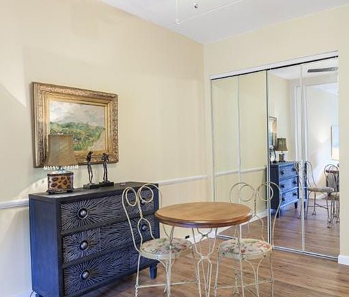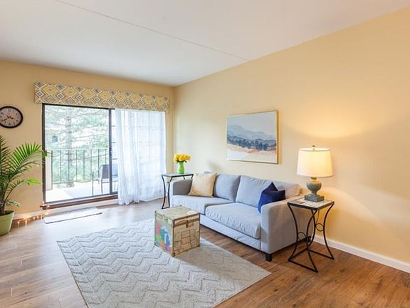 Charming bright southern exposure 1 Br/1 Bath. Balcony with tree line views and pools (inside and out). New wood floors throughout Living room and Dining room. New Carpet in Br with fresh paint. All new Stainless Steel appliances. Guest suite for resident to rent. Great amenities including swimming pools both indoor and out, sauna, exercise room, tennis courts and party rooms. Great central location near 62 &169.