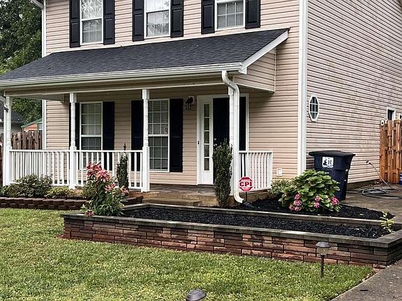 Discover this well maintained 2 story home featuring 3 beds and 2 1/2 baths. The first floor features a large living room with fireplace, dining room, half bath, laundry room, and kitchen complete with stainless steel appliances. Upstairs discover the large master bedroom with cathedral ceiling, ensuite with garden tub/shower combo and large vanity with double sink. Two other bedrooms and a full bathroom. Relax on the large covered front porch. Enjoy a large fenced in backyard complete with fire pit. The entire home has been freshly painted. LVP flooring throughout. New hot water tank 2024, HVAC 2020. Great location on quiet street conveniently located close to shopping, restaurants, highway 74, and 74 bypass. No HOA.