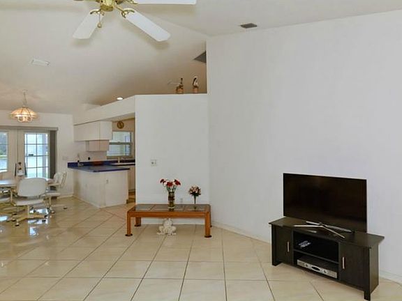 Welcome to this great 3 bedroom 2 bath home in Rivers Edge. This home has a split floor plan, tile throughout the entire home, vaulted ceilings, newer a/c and water heater and a large lanai with vinyl, removable windows. This original owner has taken great care of this home. You will enjoy the pond views as well as the back yard that can accommodate a pool or can be fenced for the little ones or pets. The master bedroom is spacious with two walk-in closets and the bath features a garden tub, separate shower, dual sinks, and access to the lanai. Rivers Edge is well located close to schools, shopping, I-75 and has a reasonable HOA fee. Come see this house today.