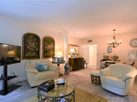 You will love coming home to this spacious 1 bedroom, 1 & a half bath condo in a serene setting that is close to everything. Kitchen has been recently updated with newer SS appliances, granite counters & lighting, no more domed ceilings. The living/Dining room is S. facing and has wonderful light and views of the grounds. New wood look plank tiles flow through out living and bedroom. The oversized BR features 2 closets & bath w/ newer vanity, counters and fixtures. Screened balcony is the ideal place to start your day with a cup of coffee or unwind with a glass of wine in the evening! Impact windows provide peace of mind and ins. savings! Covered parking with storage area will keep your car out of the sun and you dry during the summer showers. This is a 55+, pet friendly community.