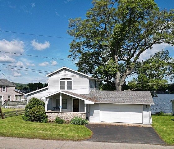 Are you seeking a great value in a lakeside home in the Finger Lakes of NY? This lakefront home is located on a Glacial Deposit Lake very familiar to residents of Bath. Ideal for a permanent resident, vacation home, or vacation rental opportunity. 3 bedrooms and 2 full baths (including a whirlpool tub) A full dining room and office as well. Generous back deck (you can see the Sunset) and covered front porch (sunrise views as well). 2 car garage for parking, hobbies or a workshop. Lake Salubria has no restrictions on boating so one would be able to add a dock and plop a pontoon boat on the lake! The lake sees water skiers as well, and freezes over completely in the winter! and, you can always fish!