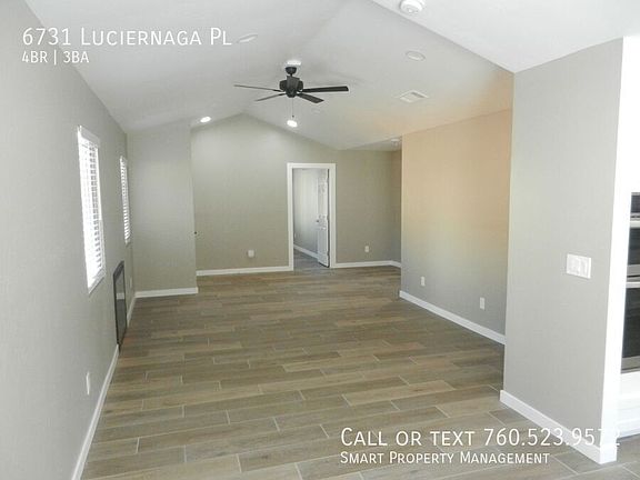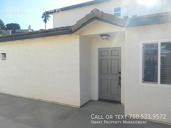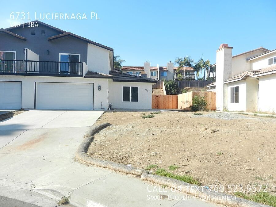 6731 Luciernaga Pl., Carlsbad, CA 92009 4 Bedroom/ 2.5 Bathroom/ 2 car attached garage/ 2200 sq ft 2 story twin home! Located on a quiet cul-de-sac street! 1 Bedroom downstairs. Decorative fire place in Living room. Central A/C! 2 Car attached Garage with opener! Beautifully remodeled Twin home in Carlsbad. Large front and back yard with low maintenance, drought-tolerant landscaping. Open concept kitchen with an island and bar seating. Quartz counter tops and newer appliances, including a newer refrigerator. Washer and dryer provided in garage! Large driveway leads to a two-car attached garage. Upgraded bathrooms with tile shower and bathtub. Luxury vinyl flooring through out. View balconies in front and back are accessible from each bedroom. Available now! Pets OK with owner and home owner's insurance approval and additional deposit/rent. Thanks for your interest! This Property Proudly Managed By Smart Property Management