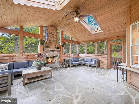 Beautiful colonial on over 7 Acres with an entry level guest suite, and a detached garage with stables! This beautifully updated colonial is nestled on over 7 private acres and offers the perfect blend of classic charm, modern updates, and versatile living space, including a detached garage with stables which have power and water, and a young orchard of apples, pears, peaches, and berries. Step inside to a bright and airy open floor plan featuring hardwood floors, offering spacious living and dining areas highlighting a wood burning fireplace and accent molding, a cozy sitting room, and a stunning sunroom with a soaring cathedral wood ceiling, skylights and a rustic stone fireplace. The updated kitchen boasts dual-tone cabinetry, granite countertops, stainless steel appliances, and a sunny breakfast area. A powder room and laundry area are conveniently located on the main level and lead to a private guest suite with a generous living area, bedroom, full bath, and direct access to the yard, ideal for multigenerational living or long-term guests. Upstairs, the spacious primary suite offers a luxurious en suite bath with dual vanities, soaking tub, and separate shower. Two additional bedrooms and a full bathroom complete the upper level. The finished lower level includes a recreation room and abundant storage space, and additional amenities include leased solar panels, and an electric car charger. Recent updates include most major appliances, water system, tankless water heater, and more. Enjoy serene country living with the convenience of nearby shopping, dining, entertainment, and easy access to major commuter routes.