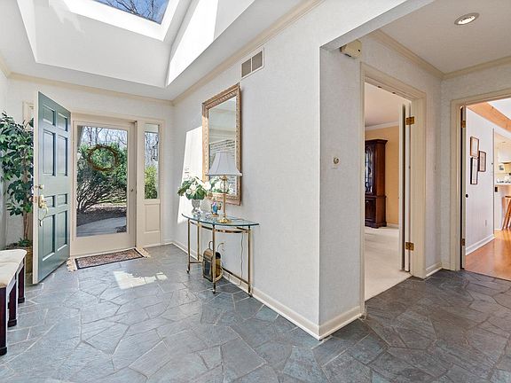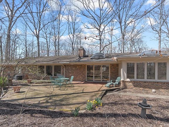 Multiple Offers Received : As you wind through this idyllic, peaceful subdivision with large private lots and eclectic homes you can't help but smile. Welcome Home. Your all brick sprawling ranch, with a nod to Mid Century Modern is nestled on a mature wooded lot. The "old school" blue slate floor in the foyer, made light and bright by the large sky light is at the center of your home, with living areas to your left and the bed room wing to your right. Straight ahead is your generous formal living room framed by a bank of windows that look out on your back yard, a wall of book shelves on one end and a stone wall with fireplace on the other end. The formal dining room with split doors that open to the hallway are a bit nostalgic but, definitely designed to make entertaining easy. Your white bright kitchen has the same hardwood floors that flow from the hallway and into your second living space. With tons of cabinets and counter space, including a raised breakfast bar and "California ceiling lighting" you will have plenty of room for extra hands in the kitchen. Your second living space features a beamed cathedral ceiling, large skylights, a brick wall fireplace, hardwood floors, a triple glass slider that brings the out side in and is open to the kitchen and nook. Perhaps my favorite room in your home is the cozy 3 season room with a wall of windows, a bar area, another large sky light , a wonderful view of your yard and an additional exit to your large patio and out door entertaining area. On your way to your oversized side load garage you will find a large hall closet and your laundry room/home office. With tons of cabinets, a laundry sink, closet, built-in desk and a window you really will have a command center for your new home. On the opposite end of the home you will find a half bath for your guests and hardwood floors that flow through the bed rooms. Your owner en-suite has a large siting area with double closets, a large area for your bed and another wall of closets, a linen closet and your shower only bathroom. The main bath in the hall way has a large double sink vanity, tub/shower and semi private stool area. Bedroom 2 is moderate sized with a nice built-in desk and book shelves. Light, bright and cheerful bedroom 3 is at the rear of the home and also has a wall of built-ins. Your home has many. many closets that will provide an abundance of storage, including 2 great closets in the garage. PLEASE see the agent remarks.