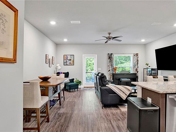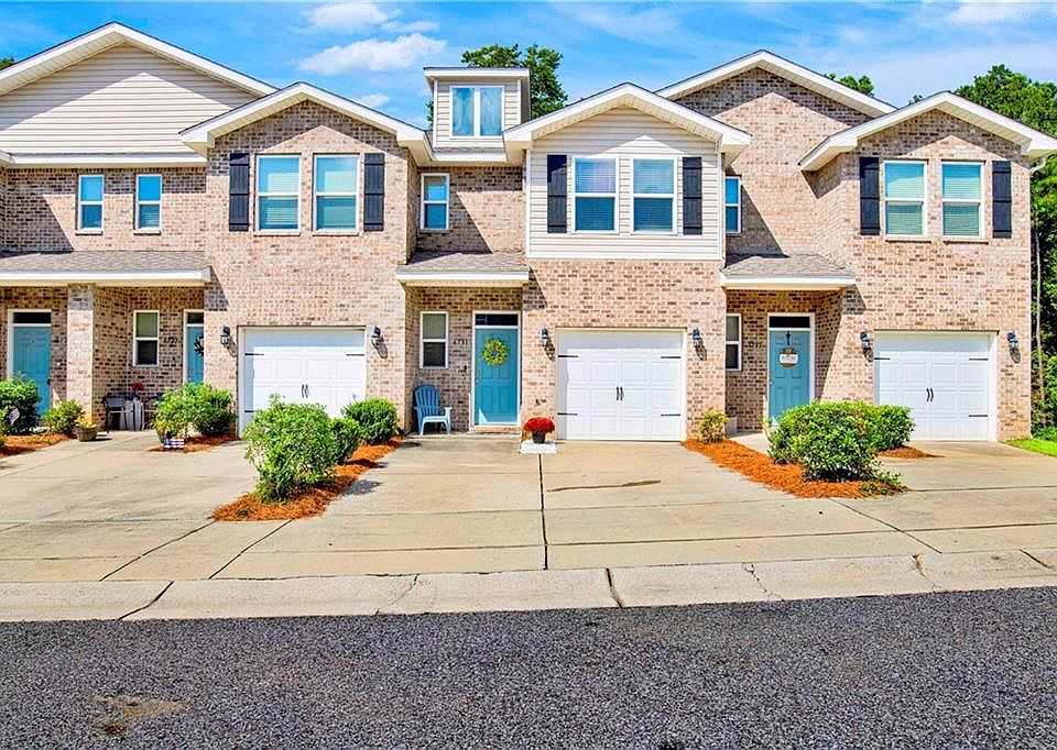 Welcome to Quail Hollow in Spanish Fort, where low-maintenance living meets modern design in this spacious two-story townhome. Featuring 3 bedrooms and 2.5 baths, this layout is designed for both convenience and style, offering the perfect balance of function and comfort for life on the Eastern Shore. The first floor opens with a welcoming foyer that leads into an open-concept kitchen, dining area, and living space. The kitchen includes a large breakfast bar, granite countertops, ample cabinetry, and stainless appliances, making it ideal for both everyday meals and entertaining. The dining and living spaces flow seamlessly onto a private back deck, perfect for relaxing evenings with wooded views of the subdivision's common area as your backdrop. A half bath and one-car garage add everyday practicality. Upstairs, the primary suite offers a serene retreat, complete with a spacious walk-in closet and a spa-like bath featuring dual vanities and a spacious shower. Two additional bedrooms share a hallway full bath and feature generous closet space. A conveniently located laundry room on the second floor keeps daily routines simple. This Gold Fortified townhome also features 9-foot ceilings, an open floor plan, and smart home technology, including a control panel, video doorbell, smart lock, thermostat, and lighting, all connected through a single app. The HOA maintains landscaping and provides access to community amenities, including an outdoor pool. Located just minutes from I-10, Mobile, and Pensacola, and close to shopping, dining, and boat launches, Quail Hollow combines a convenient location with modern comfort. Schedule your showing today! Buyer to verify all information during due diligence.