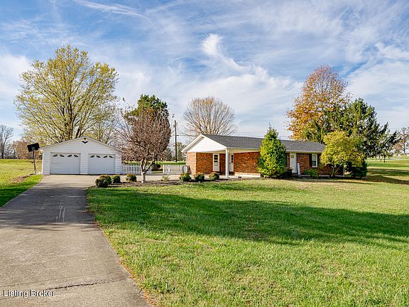 Charming 3-bedroom, 1-bath home nestled on a tranquil 1-acre lot in Bardstown, KY. Recent upgrades include a brand-new roof, completely new center beam for added stability, new sump pump, and fresh flooring in the bedrooms and laundry room. You'll also appreciate the newly installed front door and back double doors, adding both style and function. Inside, enjoy a bright, open kitchen with eat-in dining—ideal for family gatherings. Each bedroom is spacious, offering comfort and flexibility for your needs. Step outside to relax in the charming gazebo, let kids play on the play set, or utilize the detached 2-car garage for extra storage or a workshop. This home combines the peace of country living with modern updates, while being just minutes from town amenities. Don't miss this opportunity!