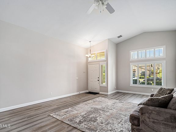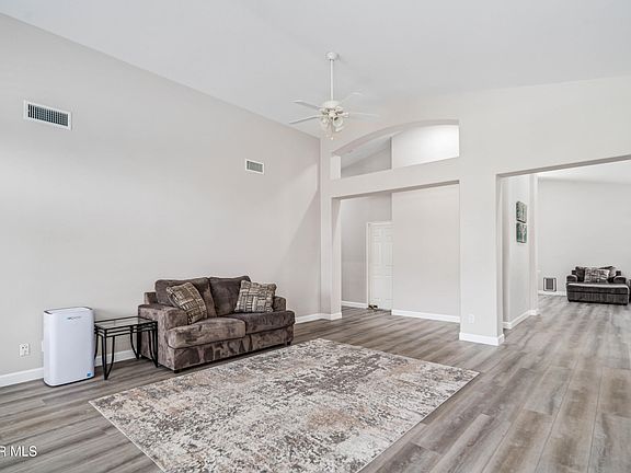 Welcome to The Royal View Estates neighborhood. Upon entry you are greeted with the formal living/dining rooms and vaulted ceiling. Kitchen is bright with quartz countertops, stainless steel appliances, pantry, breakfast bar and dine in eating area. The family room just off the kitchen, features built in shelving and a fireplace. The spacious primary suite has sliding door access to backyard, bathroom with dual sinks, a walk in closet with newer built-ins and a separate linen closet. Two more bedrooms and bath complete this home. Popular split floor plan has been beautifully updated over the past few years. Upgrades include cabinets throughout, windows, Shutters, A/C unit, tankless water heater, water softener, flooring, paint and baseboards. Nice shady backyard with covered patio and gated RV access. Everything is ready for you!
