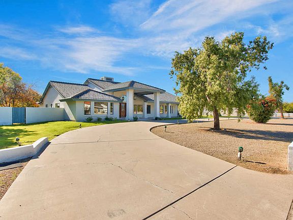 Welcome Home to this sprawling acre ranch house with horse/animal privileges. As you drive up to your new home, you see there is no shortage of parking space with a 3 Car Garage, RV Parking, circle drive & more. This immaculate well kept home has a grand entrance as you walk into the open concept floorplan & vaulted ceilings. Multi concept living spaces allow you to have functional living spaces & entertaining space, It's the perfect combination. Vintage restored dual fireplace & entertainment/bar area is centered in the middle of the massive living area, you're going to love it!! Kitchen with peninsula island/breakfast bar, lots of counter space. The chef of the household will love cooking in this 2 tone styled kitchen!! Desired Split floorplan & Dual Master bedrooms. On the east wing of the house, you have the large second master bedroom along with bedrooms 3 & 4. Bedroom 4 can be used as an office/den/hobby room. On the west wing of the house, you will have the main master bedroom which is HUGE, you'll love the window seat, big enough to have a sitting area, bathroom features a walk-in closet, his & her sinks, jetted garden tub & beautiful custom barn door. This home has so much to offer you will not be disappointed. Centrally located in the heart of Peoria, close to shopping, restaurants, freeway access, and the A-rated Peoria school district.