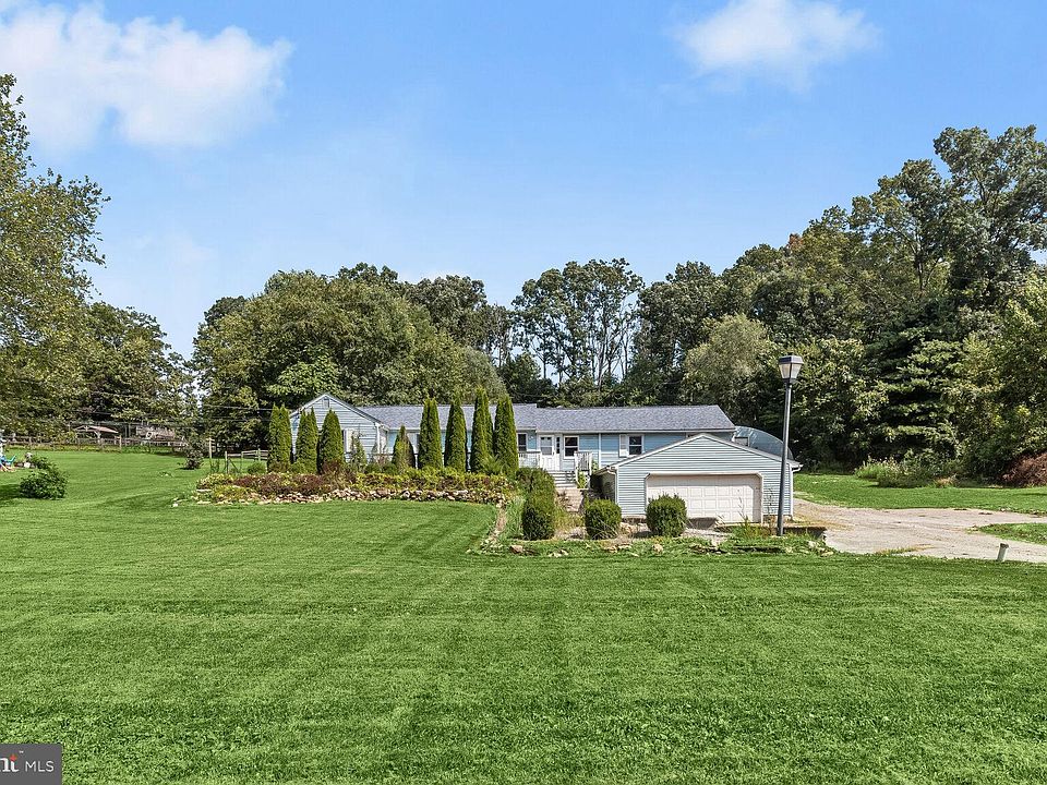 Rancher home in a great location on over half an acre boasts a fully equipped attached guest suite and updates including a newer architectural shingle roof, an updated furnace, A/C, and water heater. Hardwood flooring and a brick, wood-burning fireplace are highlighted in the living room. The kitchen offers plenty of counter space with its peninsula island breakfast bar, and access to the deck and backyard. The primary bedroom has an attached full bath. Two bedrooms, a full hall bath, and a laundry room complete the main level. There’s a fully equipped attached guest suite with a bedroom, walk-in closet, full bath, kitchenette with laundry, a living area and a second deck entry. There is the option to purchase an additional 0.98 acre parcel with a large Garage. The garage is 40x60 and 14 ft in height. See property listing under Land. The lot is a separate listing and not included with this sale.